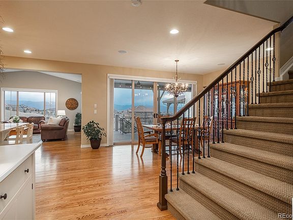 VIEW, VIEWS, VIEWS!! Situated on A LARGE lot on a quiet street backing to open space, this meticulous Backcountry home boasts top of the world views of both the mountains and downtown Denver. This 4 bedroom/4 bathroom with a large kitchen island and open floor plan are ideal for entertaining. The main level includes a private office with French doors, cozy great room with stacked stone fireplace, dining area with doors to the covered deck, and a large laundry room with work space. On the upper level you will love the spacious primary suite with breathtaking views and the primary bath with soaking tub and his and hers closets. Also on the upper level there are 3 additional bedrooms, 2 bedrooms sharing a jack and Jill bath, 1 bedroom with an en-suite bath, and a loft area which is a great study space/ play area/reading nook. The extended lower level patio offers a huge yard with beautiful landscaping and a fire pit to enjoy the amazing sunsets. Head out the back gate to and hop on one of the many backcountry trails or to the nearby park. Love the lifestyle of beautiful BackCountry with extensive trail system, clubhouse with dining, work out facility, amphitheater, resort style pools, parks, ponds, monthly events for all ages, and so much more.