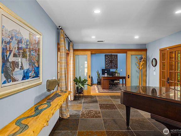 Experience refined living in this NW Contemporary retreat, surrounded by soaring cedars and vibrant rhododendrons. The primary suite offers spa-level indulgence with a soaking tub, rain shower, and private sitting room/office. Superior craftsmanship shines with custom woodwork, fir doors, and gleaming hardwoods. Recent additions include an expanded living room with built-ins, a gas fireplace, new foyer, and whole-house generator. Vaulted ceilings and an updated kitchen create a grand yet inviting flow, complemented by multiple decks, two lofts, fully fenced yards, a two-car garage, and a brand-new heating system with AC and tankless water heater.