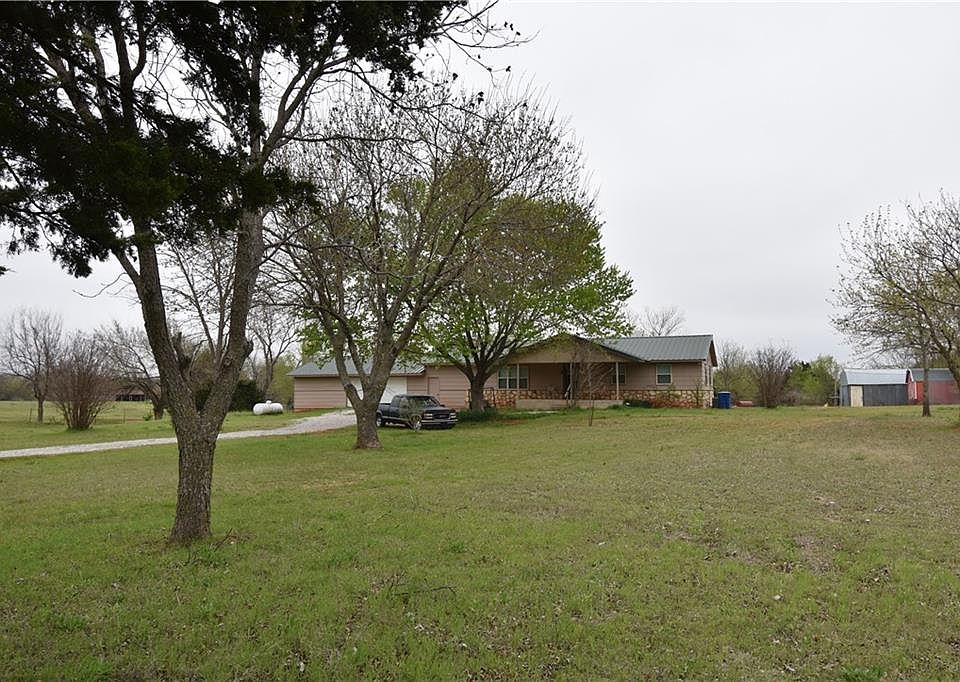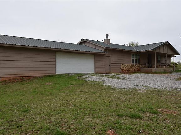 COUNTRY HOME LOCATED IN MUSTANG SCHOOL DISTRICT! This beautiful country home sits on 5 acres. Living room is spacious and inviting with a wood burning fireplace. The master suite features a large walk-in closet, vanity, tub shower combo. Home has updated low E windows & blinds throughout, gas stove, dishwasher, Hunter ceiling fans and LED lighting, door locks/knobs, fresh interior paint, smart home to include hub, thermostat, cameras (you can see and hear), lights, ceiling fans, temperature sensors, smart electric heater, and smart temperature sensor in well house. The kitchen features a new gas stove, new dishwasher, and garbage disposal. The outside features include 2 ponds, mature trees, fenced property, barn and storage shed. Inside the 4 car garage with 1 double door and 1 single door you have a large storm shelter, built in storage, shelves, and work bench. Popular visitors might include turkey and deer.