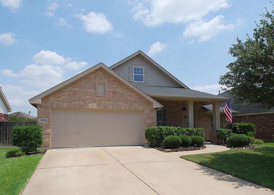 Incredible 1-story built by well known David Weekley Homes located in golf course community of Gleannloch Farms. Home is an open plan w/high ceilings & shows pride of ownership in every detail. Features fresh paint/recent carpet/tile/Silestone countertops in open kitchen w/an island & breakfast bar. Study could be 4th bdrm since it has a closet. Home is brick on 4 sides & has a covered front porch & covered back patio & a lg covered deck. Looks & feels like a new home without the high tax rate.