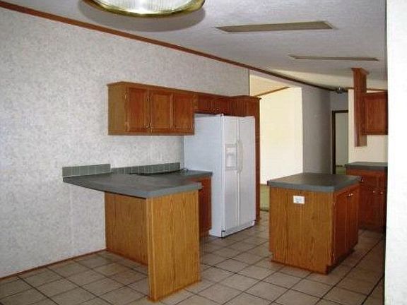 Spacious manufactured home with ceramic tile flooring, sheet rock walls, split floor plan. Huge kitchen with all appliances, adjoining den with wood burning fireplace. Master bedroom with retreat area, walkin closet and stylish master bathroom. Within 4 miles of Kerr Dam and Lake access.Covered front porch, nice rear deck and detached carport.Perk for 3 bedroom