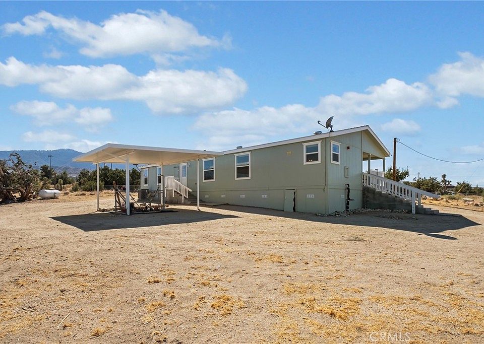 MOVE IN READY... So much opportunity and Lots of space to spread out, bring the toys, and the four-legged friends. This home features a horse enclosure, 3 dog kennels, and an outside carport. Built-in 2021 on a permanent foundation, located just off of HWY 138, within the Snowline School District, and conveniently near gas stations, stores, and restaurants. approximately 15 mins from Wrightwood to enjoy summer and winter activities, fishing, or Silverwood Lake for camping and Water activities. with 3+ Acres the possibilities are endless. 1 Acre is completely fenced with a circular driveway access for convenience. Enter into an open-concept floor plan, with a wood-burning fireplace, a mix of Laminate and carpet flooring. The primary room features a very large closet, and spacious bathroom. The home also features central air and heating, with fire sprinklers throughout the home. Step outside the patio deck built with Trex to enjoy the sunrises and sunsets with your beverage of choice and don't forget the amazing Sunrises and Sunsets. The BEST the desert has to offer.