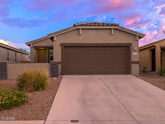 Welcome to 10715 W. Golson Drive, a beautifully updated three-bedroom, two-bath home that is truly move-in ready. Built in 2021 with energy efficiency in mind, this Carnival floor plan has been enhanced with thoughtful upgrades, including extended tile flooring throughout the entire home, giving it a seamless and low-maintenance style with no carpet in sight. The freshly painted interior provides a crisp, like-new feel, while the manicured backyard offers the perfect setting to relax with your morning coffee or host weekend gatherings. Inside, the open-concept kitchen features granite countertops, stainless steel appliances, pendant lighting, and a tankless water heater, combining modern style with everyday practicality. The great room opens to a covered patio where you can unwind and take in the gorgeous sunsets. The location is just as impressive as the home itself. Residents enjoy close proximity to community splash pads, The Loop bike trail, the brand-new Fry's, the Marana Aquatic and Recreation Center, and several exciting new businesses coming to the area. With so much convenience at your doorstep, this home offers not only comfort and efficiency but also a vibrant lifestyle.