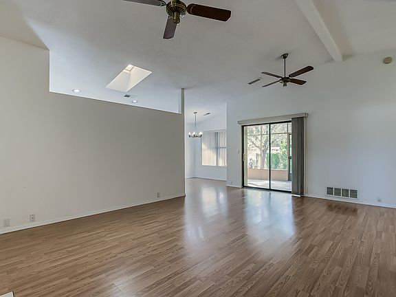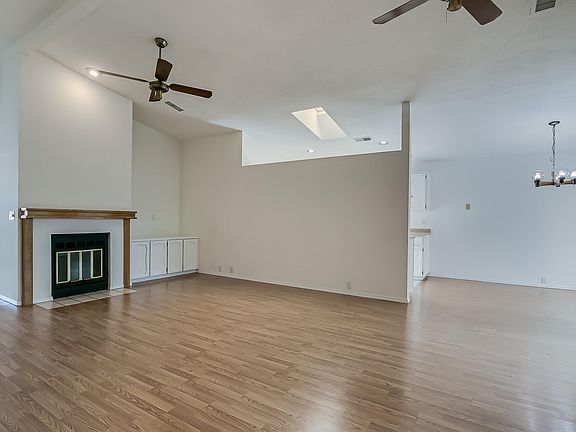 Well-maintained 1-story ranch in exclusive gated Town Park Subdivision. Conveniently located near KAFB and Sandia Labs. HOA incl security gate, front yard maintenance, parks, pools, tennis, clubhouse, fitness rm & street maintenance. Spacious great rm w/cathedral ceilings, wood-burn Fireplace, built-ins & plant shelf. Skylights add natural light. Wood-lam floors in great rm, dining & nook; ceramic tile in kitchen, laundry, entry, hall & baths; carpet in BRs. Primary bath w/skylight & spacious walk-in shower; hall bath with tub/shower combo. All bedrooms have walk-in closets. Ceiling fans in great rm & primary suite. Central forced-air gas heat & refrig A/C. Low-maint yards w/mature trees & a large covered screened in back patio. Finished 2-car gar w/insulated door & electric opener.