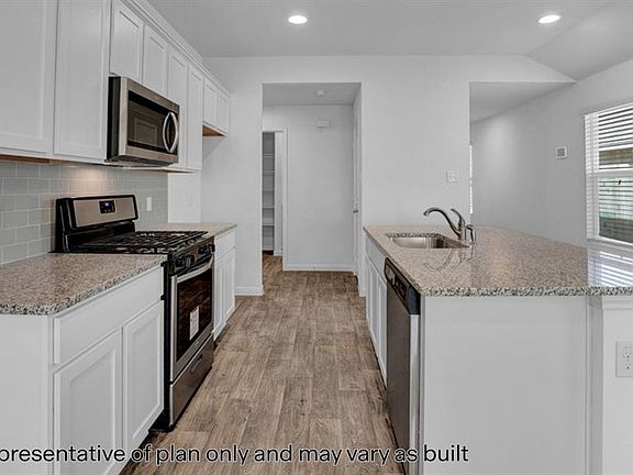 Discover the Caroline plan, one of our new homes in The Enclave at Hefner Crossing in Oklahoma City. With 3 bedrooms, 2 bathrooms, and 1470 square feet, this home offers space and comfort. Secondary bedrooms are thoughtfully placed near the entry, leading you into the open-concept living spaces. The kitchen showcases shaker-style cabinets, stainless steel appliances, a pantry, and a central island with sink and dishwasher. At the back, the primary suite provides privacy with an adjoining bath and a generous walk-in closet. This home includes our Home Is Connected® smart home package — featuring a camera doorbell, control panel, Kwikset® keypad lock, and smart switches. It also comes with a fully sodded yard and a front landscaping package for added curb appeal. This design blends function and style, making it perfect for families searching for new homes in Oklahoma City.