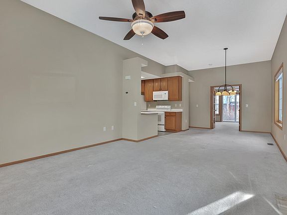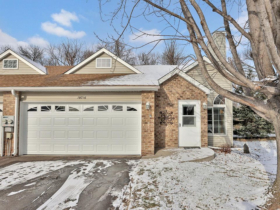 Charming One-Level End Unit Townhome in Prime Coon Rapids Location! Discover this 2-bedroom, 2-bathroom townhome featuring an open floor plan that seamlessly connects the living, dining, and kitchen areas. The inviting living room boasts a cozy fireplace with a new surround. The spacious primary bedroom offers a walk-in closet and an en-suite bathroom with dual sinks. 2nd bedroom could be used as a sunroom or an office. Enjoy peace of mind with numerous updates, including newer windows, a patio door, and a front door, along with a brand-new furnace and dishwasher (2024) and a water softener (2021). Additional highlights include a built-in hallway feature, an epoxy garage floor, and more. Step outside to enjoy the serene privacy of this home's wooded and green space backdrop. With its prime location, thoughtful updates, and private setting, this townhome is a must-see!