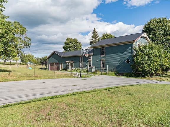 Welcome to this charming 3-4-bedroom home, perfectly set on just over an acre of land. Step inside to a bright, inviting layout featuring a spacious eat-in kitchen with custom oak cabinetry, a center island with built-in storage, and a formal dining room highlighted by gleaming hardwood floors. The first floor offers flexibility with a full bath boasting a tiled glass-enclosed shower, along with a bedroom. Upstairs, you’ll find three generous bedrooms, a walk-in closet, a full bath, and a partial attic providing extra storage. Plus many bonus rooms to use for office, playroom, nursery, etc. Oversized windows throughout the home fill each room with natural light. Additional highlights include a welcoming mudroom that connects to the attached two-car garage, and a large detached heated garage/workshop with space for four or more vehicles, a car lift, and endless storage—ideal for hobbyists or mechanics. The home is efficiently heated with an outdoor wood boiler. Relax on the side porch, enjoy the mature landscaping, and take in the peaceful setting of this beautifully maintained property. With its prime location and versatile amenities, this is a home you won’t want to miss!