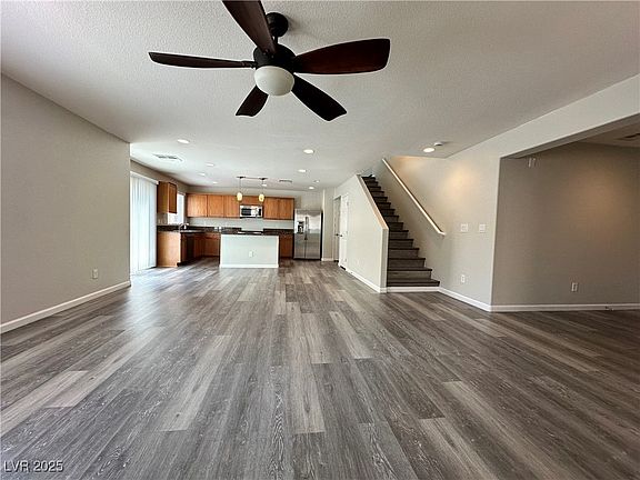 Sophisticated 3 bedroom + loft residence blending modern design with elevated living. Refined upgrades include luxury vinyl plank flooring, designer barn door accents, a whole-home water softener, and a state-of-the-art tankless water heater. The spa-inspired primary suite lives like a private penthouse retreat. The crown jewel: a rooftop deck with iconic Las Vegas Strip views perfect for unforgettable evenings or serene escapes. All within a gated community offering a resort-style pool and Knickerbocker Park just moments away. And here's the truth you won't find views like this at this price point anywhere else.