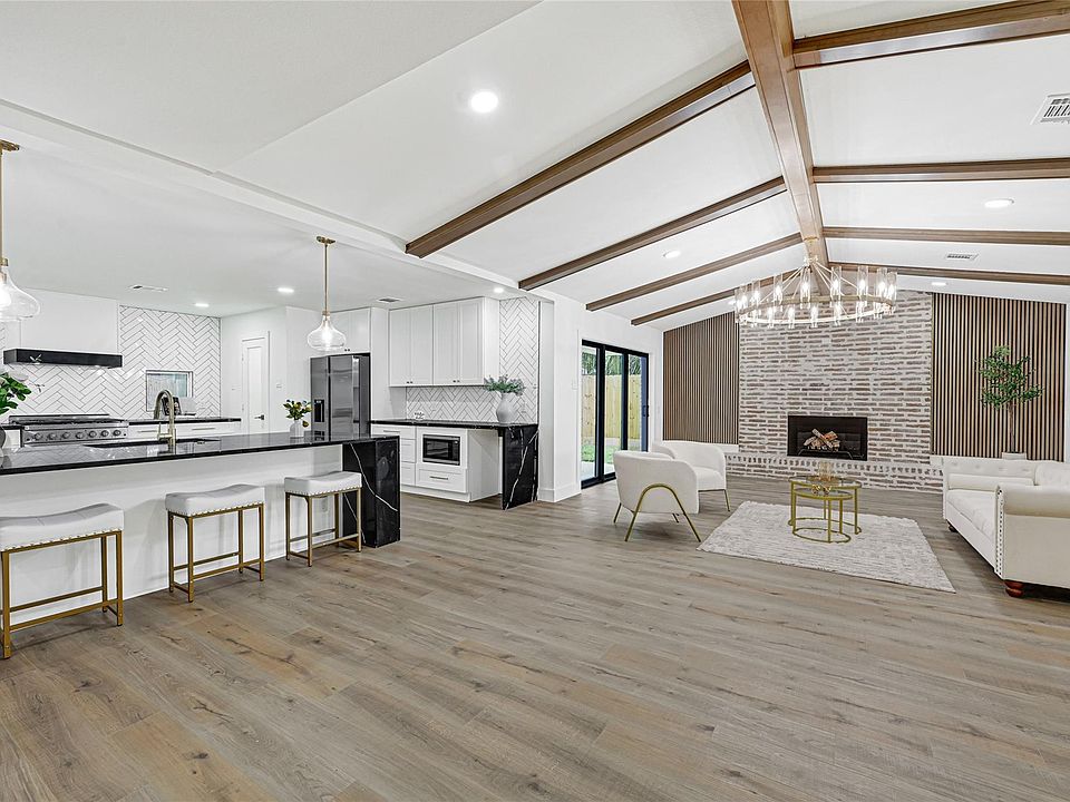 Come home to this Meticulously Upgraded and Remodeled Single Family Home located at a fantastic location only minutes away from Shopping, Restaurants and Schools. This Lovely One Story Home offers 3 Bedrooms, 2.5 Baths, a Spacious Den featuring a Cathedral Ceiling & Fireplace and a 2-Car Attached Garage. Beautifully remodeled Kitchen features an Oversized Waterfall Island, Quartz Countertops, Brand New Cabinets, Stainless Steel Appliances incl. Refrigerator & a 36" high end range that is a chef's dream. The house also features Brand New HVAC unit, New Roof, New Luxury Vinyl Flooring, New recessed LED lights all over the house, New remote-controlled Fans in each room, New Double Pane Windows, Completely Remodeled Bathrooms with New Vanities, Quartz Countertops and New PEX Plumbing & Fixtures. Complete Fresh Exterior & Interior SW Paint with new Baseboards. Step outside to discover a Relaxing Pool, Decks, and a Courtyard-side Patio, perfect for entertaining.