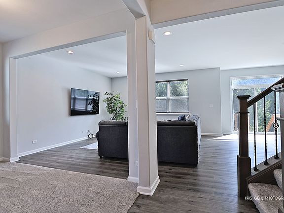 Skip the wait and settle into this beautifully maintained 4-bedroom, 2.5-bath home located in the highly desirable Sunset Ridge neighborhood. Built with modern living in mind, this open-concept layout offers the perfect blend of function and style. Step into the spacious main level featuring a dedicated home office, a formal dining area, and a bright family room that flows seamlessly into the chef's kitchen. The kitchen is a standout with quartz countertops, a massive island, stainless steel appliances, ample cabinetry, and a double-door pantry-perfect for everyday living and entertaining. Upstairs, all four bedrooms are thoughtfully arranged around a convenient second-floor laundry room. The luxurious primary suite includes a large bedroom, dual closets with custom Wisconsin Closet organizers, and a spa-like bathroom with double sinks, a soaking tub, and a separate shower. Three additional spacious bedrooms share a full bath. The English basement offers bright natural light and is ready for your finishing touches, complete with a bathroom rough-in. Enjoy the outdoors from your custom tiered deck right off the kitchen-ideal for entertaining-with a built-in hot tub. The 3-car garage provides plenty of storage and room for all your toys. All of this in a top-rated school district, close to parks, trails, and all the amenities you need. Don't miss this opportunity-schedule your private showing today!