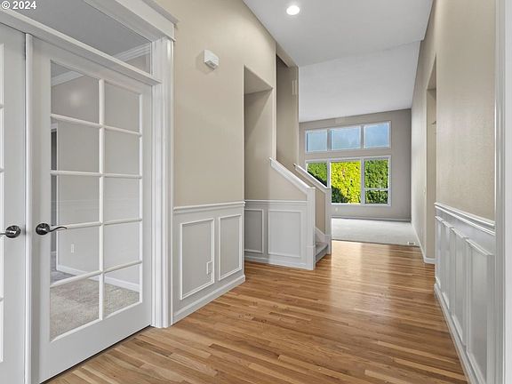 - Flooring: Hardwood, Wall to Wall Carpet, Wood