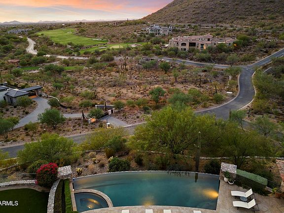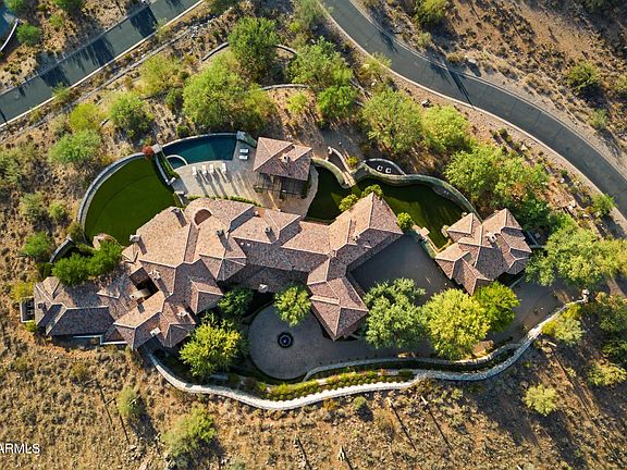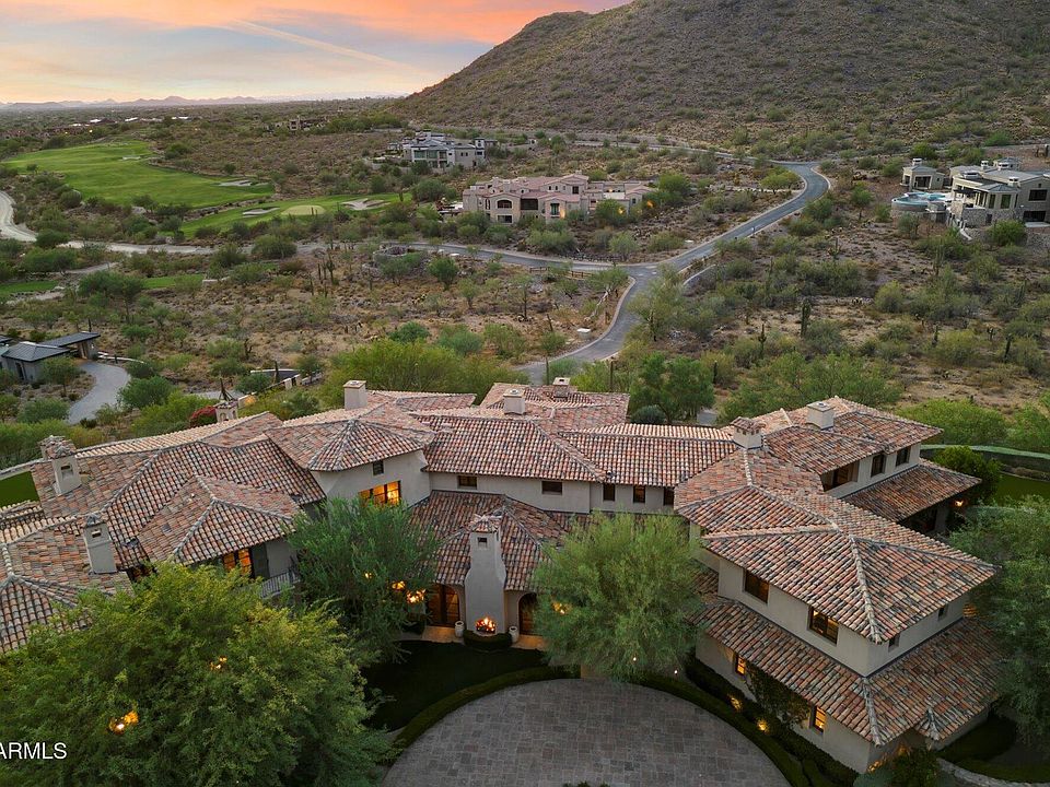 Warm and welcoming, nestled on a flat pad, motor court and zero-grade entry both at the main house and detached guest house. Access front-and-rear yard without elevation changes. Secondary family room, wet bar and additional bedrooms are all on the upper level, offering views. Enjoy a sprawling front row seat experience of Silverleaf's vibrant golf course, diamonds in the skies and city lights below at night and captivating mountain views throughout the day. Flawlessly crafted; meticulously maintained by valley's renowned luxury home builder, Desert Star Construction. This signature address encompasses over 9 acres; 13,961 square feet of living space to including 1,789 SF 2-bedroom detached guest home. Quick move-in, Golf Membership and Furnishings can be Available. Easy to show. LEED certified; with geothermal heating and cooling energy efficiency. Amenities include a baker's prep kitchen, butler's pantry, wine room, 13 limestone fireplaces, plaster walls, custom cabinetry and solid hand-hewn walnut doors. Alfresco amenities include an incredible pool and spa, low maintenance lawn, and a wealth of lounge and dining spaces. Horseshoe Canyon at Silverleaf is known for its prestige, lower density and highest level of security. This masterpiece exudes pure timeless elegance, privacy, and craftsmanship. SEE MOTION VIDEO.