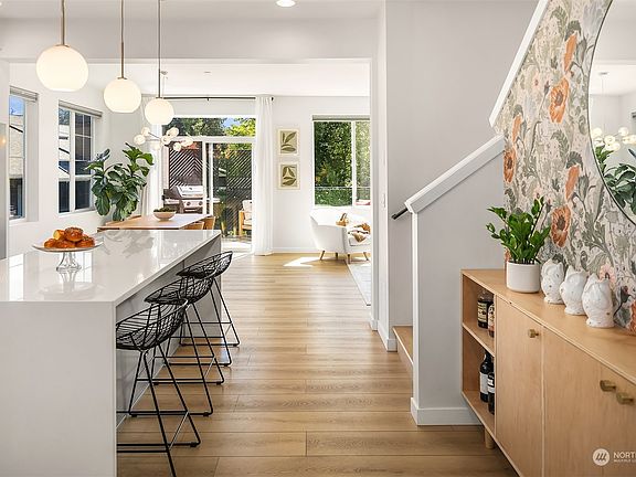 Compare this home to New Construction- Stunning remodel with modern finishes throughout!! Conveniently enter on the MAIN FLOOR, with no immediate stairs+ 2 car wide garage ~ a rare perk! Open-concept main floor features a Chef’s kitchen & powder bath~ Will not disappoint: SS appliances, gas cooktop, waterfall island & custom cabinets. Awesome TV rm & private south-facing deck. Upstairs, a stunning Primary suite with luxe 5-piece spa bath & brag worthy custom walk-in closet! 2 more BR’s, a full bath+ laundry rm. Lower level hosts a massive 4th BR/Flex Space +huge walk-in closet. This end unit has soaring ceilings throughout + extra windows for natural light! Mini Split A/C unit @each floor, Cat-5e network & more! 4 blocks to DT Bothell!