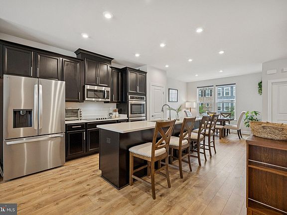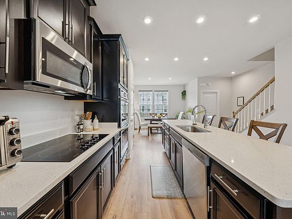 BEAUTIFUL 3-level garage townhouse in desired Bradley Square. Welcome your guests in the spacious foyer. Enter a great sized flex space, perfect for a rec/movie room, home office, gym or even a 3rd (NTC) bedroom with a FULL bath. Next level offers a bright open concept living with lots of natural light. STUNNING gourmet style kitchen with expresso cabinets, quartz counters, stainless appliances (including new fridge) double wall-oven, HUGE island with enough seating for 5+ stools and a pantry. On either side of the kitchen is a large family room and dining room with room for a large table. Off the family room is a French Door that leads out the deck. There is a half bath on this level as well. Upstairs offers two very spacious bedrooms. The primary suite on the backside of the home with large closet and private bath with walk-in shower and designer tiles. Secondary bedroom also features a private bath with tub/shower. Engineered wood floors in the foyer, both sets of stairs, main level and upper level hall. Additional features include nest thermostat with room sensors, and upgraded smoke/cm detectors. Garage offers overhead storage shelving. Too many details to list it all. Perfect community located in the heart of Manassas, minutes to shopping and restaurants, Old Town, VRE and major commuting routes. Plus the community itself offers tot-lots with a splash pad, lots of walking trails/sidewalks, park with gazebo and a community pond.