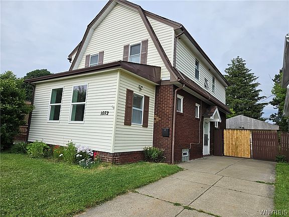 So Bflo 4 bed 1.5 bath home close to everything! First floor offers convenient bedroom and 1/2 bath Updated kitchen with ceramic tile floor includes appliances and features a granite breakfast bar open to dining room perfect for entertaining. Beautiful wood floor throughout rest of 1st floor. Large living room with decorative fireplace leads to bright sunroom. Primary bedroom on 2nd floor with huge walk-in closet. Two additional bedrooms and full bath with tiled shower round out 2nd floor. Two car garage perfect for parking and storage. Updates include some newer windows, new entry door, HVAC '22, glass block windows '19, roof '22 and '24, gutters '24. Walk to shopping, restaurants, parks. Seller will consider offers between $229,900 and $244,900.