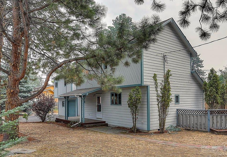 NW Bend Downtown Home on HUGE City Lot! 1400+sf, Located in a great part of Downtown Bend home situated on the lot to facilitate its passive solar design 2Bd/1.5Ba + Bonus Room w/separate entrance above garage & ADU potential, large covered front porch/deck, tiled entry, open beam ceiling w/cedar accents, skylights, Kitchen w/wood lam floors off the dining area, laundry room w/W & D, storm/mud room off back patio, upper deck/breezeway, fenced backyard, mature Ponderosa Pines, RV parking, newer ext paint!
