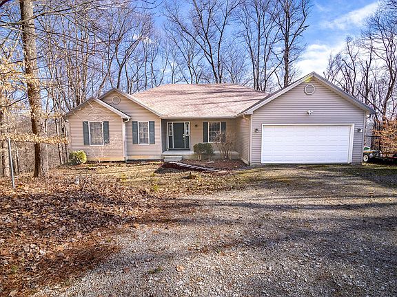Updates, upgrades and value galore! Amazing opportunity to own a beautiful and well cared for 4 bed, 3.5 bath ranch home on 1.38 acres in the private gated Hide-A-Way Hills community. Features: Exotic Cypress hardwood floors, custom Amish cabinetry, remote controlled pellet stove, 8'' thick poured concrete walls, $50k finished basement (2008) with 9' ceilings and the second of 2 owner's suites in the home, newer water softener (2021), new 30-year shingle roof (2022), brand new bedroom carpet (3/6/23), 240v electric in garage, large bedrooms. large bathrooms, large closets, large deck for entertaining and much more! Complete update list can be found under the ''Document's'' tab. Did we mention the seasonal views of the Lake of the Four Seasons and short distance to the beach area?