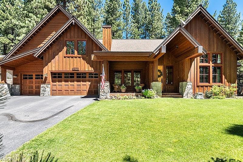 Beautiful Fortress Construction Classic Tahoe lodge style home. 4 bedrooms 3.5 baths, over sized 3 car garage. Master bedroom, 2 guest bedrooms, living room, dining, kitchen and laundry on main level. Upstairs family/rec room and guest suite. Knotty Alder cabinetry/trim, slab granite counters, hardwood/stone flooring and granite fireplace. Beautifully landscaped fenced backyard perfect for entertaining!