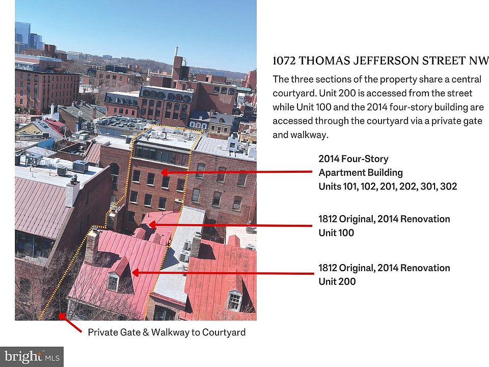 The property underwent a meticulous redevelopment in 2014 seamlessly blending old and new. The historic 1812 structure was transformed into two upscale apartments and a new 4-story rear addition created six contemporary units. The two structures share a unique central courtyard in the heart of Georgetown and total more than 7,300 square feet of finished space across the eight rental units. With its prime Georgetown location just steps from the C&O Canal, the Washington Harbor waterfront, M Street’s trendy retail corridor, and both Georgetown and George Washington universities this property offers secure and projectable cash flow with enduring tenant demand. Opportunities to secure a multifamily asset of this scale in Georgetown are exceedingly rare. This landmark property brings a combination of proven rental history, high-end design, historic designation and central location making it a strategic long-term revenue generating investment offering reliable yields.