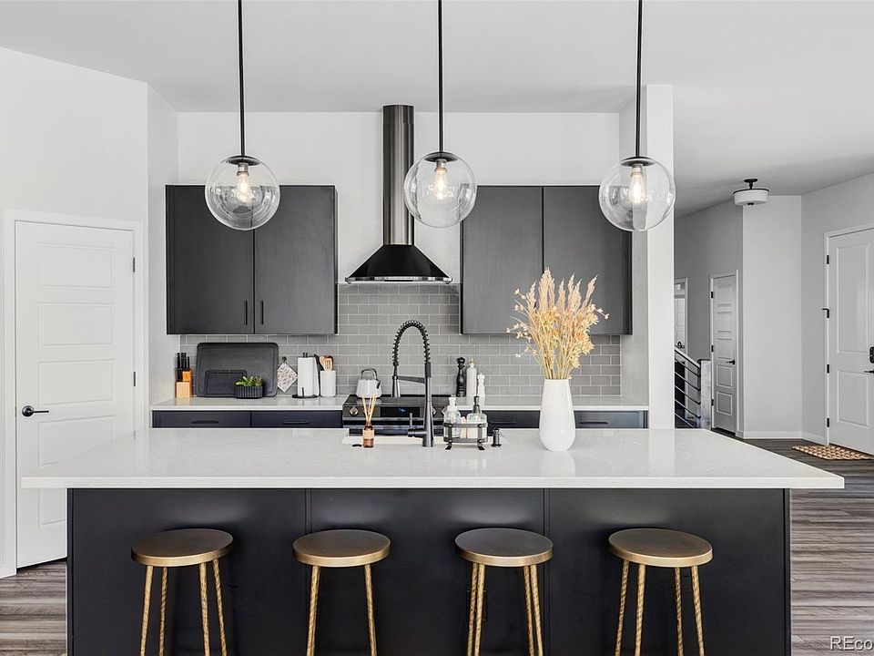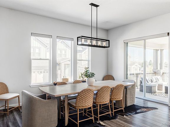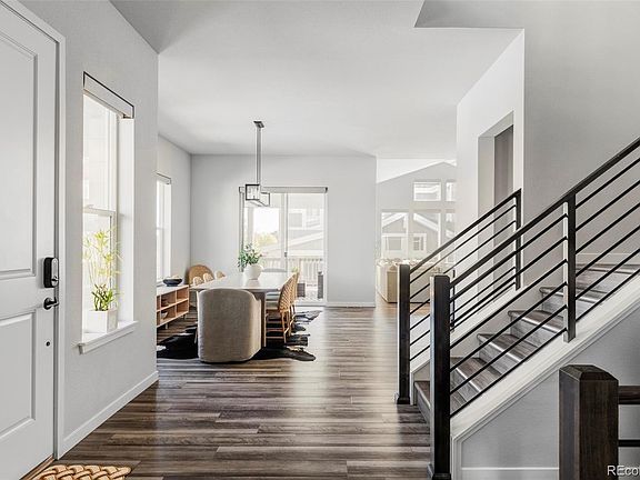 Framed by breathtaking views of South Table Mesa, this end-unit duplex embodies refined modern living with an elevated Colorado sensibility. High-end finishes and thoughtful design define every space, beginning with an open main level adorned with grey oak LVP flooring, 10-foot ceilings (14-ft in living room), and a striking floor-to-ceiling gas fireplace. The chef’s kitchen impresses with an oversized island, walk-in pantry, stainless steel range and shaker-style soft-close cabinetry, illuminated by modern pendant lighting. The dining area opens to a spacious outdoor entertaining space, creating a seamless flow between indoor and outdoor living. A light-filled office rounds out the first floor. Upstairs, the primary suite showcases 14-ft vaulted ceilings, a spa-like bath and a generous walk-in closet, joined by two additional bedrooms, as well as a second bathroom, and a convenient laundry room featuring utility sink. The finished basement offers flex space, wet bar, guest suite, and additional living area, as well as large storage room. The attached two-car garage and access to nearby trails complete this inviting Golden retreat. Ample additional guest parking on 10th Ave.