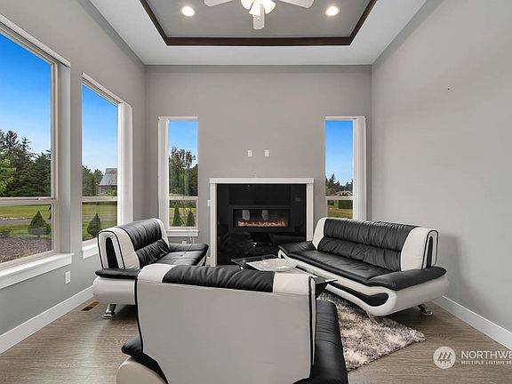 Experience luxury living in this custom-built home nestled on 2.7 acres, featuring high ceilings, luxurious touches, and modern design. The open guest room and living room boast white countertops, high-end appliances, and ample cabinetry. The spacious spice kitchen allows for culinary creativity. All bedrooms are attached to a full bathroom, and the main floor features beautiful tile flooring. Step outside to the concrete patio, perfect for lounging or entertaining. The property includes a 2-car garage with a soundproof exterior, all house insulation, and garage insulation. Don't miss the opportunity to turn this into your paradise, located close to Bellingham for shopping and amenities.