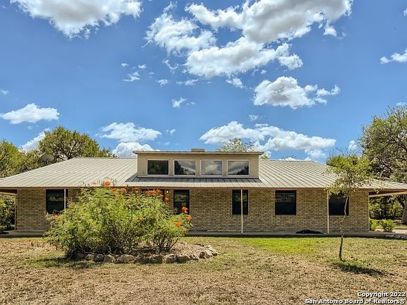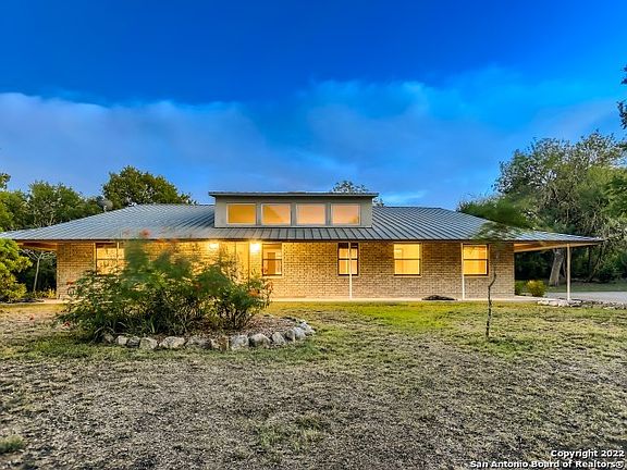Special Financing Available- Save THOUSANDS!** Don't miss this private, gated Hill Country home conveniently located minutes from 1604/Bandera Rd. This ranch style home, with full wrap-around porch, sits on 4.4 acres with over 1100 SF shop/storage space, and a 40x50' fenced garden with room to build another dwelling, if desired! Upon entry of the 2400 SF single story home, you are greeted with soaring ceilings, an abundance of natural lighting, and gorgeous engineered hardwood floors throughout (No carpet!) The open-concept kitchen, complete with Custom Cherry Wood Cabinetry handcrafted by the original owner, overlooks the combination Living & Dining rooms. Off the main living space are two separate wings that house 4 bedrooms (all with walk-in closets), an office/flex room, an oversized utility room, and a completely floored attic. The oversized master suite includes a large walk-in closet, double vanity copper sinks, custom built-in shelving, an expansive walk-in shower & even a "Texas Bidet". Detached from the home is a separate building which contains a 3 Car Carport, 10x5.5' storage room, 28x18' shop & 20x28' steel frame shop complete with manual hoist & overhead bay door. Both shops include electricity & AC units. Last but not least, this property includes it's very own auto oil change pit!
