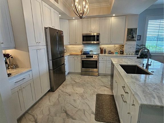Available May 1! Your home away from home. A condo like no other, Corner Screened and tiled lanai overlooking beautiful serene lake and golf course. Turnkey 2 Gorgeous Bedrooms and 3rd bedroom as a den / 2 Bathroom condo. Everything and more for your relaxing vacation rental you could need or want. Just bring your toothbrush and your bathing suit. Extra large open kitchen with tons of cabinets and stainless steel appliances, marble counter tops and marble breakfast island with sink make you feel like you were home and perfect for cooking those gourmet guest meals. Marble tile and Plantation shutter throughout unit. Bedrooms and den carpeted. Open bright living room with 3 pocket sliders leading onto tiled lanai with lake view and door to master bedroom. Large Master Bedroom in back of unit so you wont be disturbed by your guest. Bedroom has lake view, King bed, tray ceiling, & large walk in closet and door to lanai, Master bathroom has his/her sinks, marble counter tops and step in corner shower. Guest bedroom and den at front of unit has Queen bed and 3rd bedroom office has desk and furniture, perfect for those who need to work from home while on vacation. Guest bathroom has tub and and marble sink countertop. Washer and dryer in residence. Pelican Preserve offers 70,000 sq ft. Town Center offering 2 outdoor pools, indoor lap pool & walking track, pickleball, tennis, spa, fitness center, 2 restaurants, craft, sewing & woodworking room, billiards room, theater, exercise classes bingo nights, card rooms, outside amphitheater, nature walk with preserve boardwalk, & more. Rentals under 6 months include electric w/cap, cable & internet, tenant to pay 11.5% tax Available May - October $2300 per month plus taxes and fees. Utilities Included. Lease for 6+ Months no taxes required