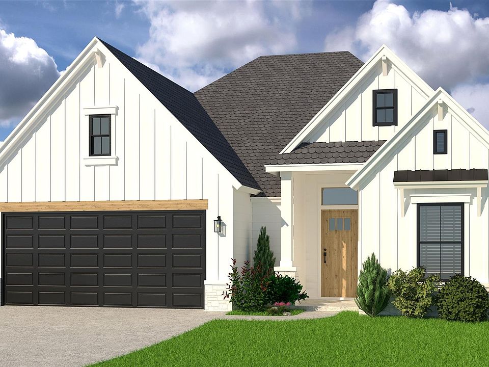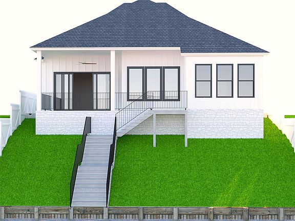 Beautiful new construction on Lake Conroe, featuring a traditional-style design with clean modern finishes. This 3-bedroom, 2.5-bath home offers open-concept living with tall ceilings, abundant natural light, and a large sliding glass door leading to a covered back porch overlooking the water. The kitchen includes an island, custom cabinetry, and pendant lighting. Exterior highlights include board-and-batten siding, a covered entry, and an elevated rear deck with stairs down toward the lake. The home is currently under construction with an estimated completion of February 2026, perfectly timed for lakeside living in spring!