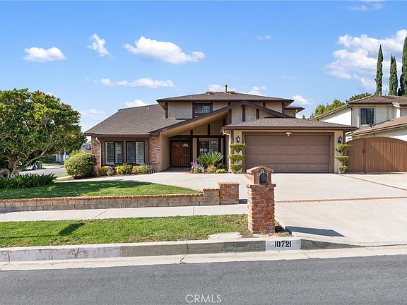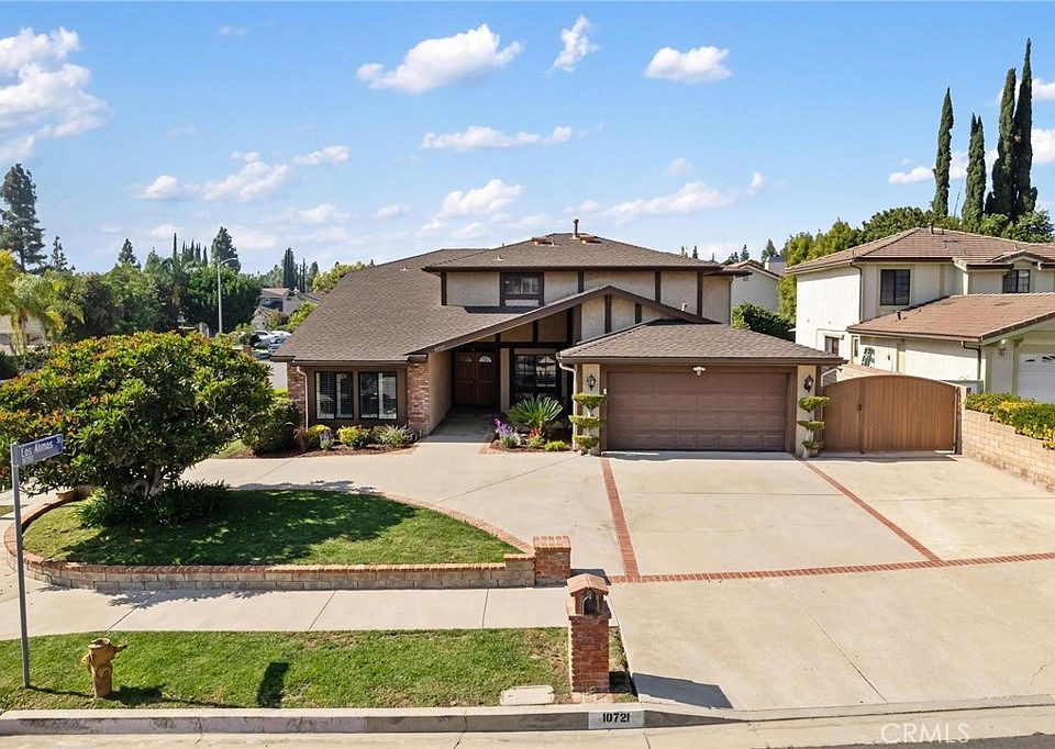 Welcome to 10721 Crebs Ave., a beautifully maintained home on a prime corner lot in one of Northridge’s most desirable neighborhoods. Enjoy a sweeping circular driveway with RV parking, all just minutes from The Vineyards at Porter Ranch, convenient freeway access, scenic hiking trails, and top-rated charter schools including Beckford Elementary, Nobel Middle, and Granada Hills Charter High. This spacious residence offers 5 bedrooms and 3 bathrooms, including one bedroom and bath on the main level, with over 3,000 sq. ft. of bright, comfortable living space. Thoughtfully updated, the home features newer luxury vinyl flooring, smooth ceilings, dual-pane windows, plantation shutters, Nest thermostat, Ring doorbell, updated fascia and gutters, and central air and heat for year-round comfort. An open floor plan highlights a step-down living room with vaulted ceilings, a formal dining area, and a spacious family room complete with a brick fireplace and custom built-in dry bar with a quartz countertop. The eat-in kitchen offers abundant cabinet space, a movable center island, and sliding glass doors leading to the manicured backyard. Upstairs, you’ll find three secondary bedrooms plus a generous primary suite featuring dual closets (including one walk-in), a dressing area, and a gorgeously remodeled ensuite bath with a quartz dual-sink vanity, soaking tub, and separate shower. Entertaining is effortless in the low-maintenance backyard, enhanced with artificial turf and a covered patio—perfect for outdoor dining or relaxing with family and friends. Additional amenities include an indoor laundry room and a direct-access two-car garage. This Northridge gem combines space, comfort, and modern updates in an unbeatable location!