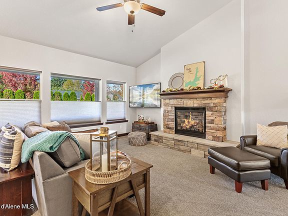 Charming Single-Level Home - This 3-bed, 2-bath, 1,854 sq ft beauty combines cozy living with modern style. Enjoy the gas fireplace, custom blinds, and vaulted ceilings that add warmth and elegance. The open layout features a breakfast bar, beautiful LVP flooring and excellent finishes throughout. Step outside to a beautifully landscaped, low-maintenance backyard offering privacy, plus covered porches front and back—perfect for relaxation or entertaining. Golf carting distance to Avondale Golf Club, Hayden Lake Country Club, Honeysuckle Beach, and great dining and shopping spots. Don't miss out on this exceptional home and prime location!