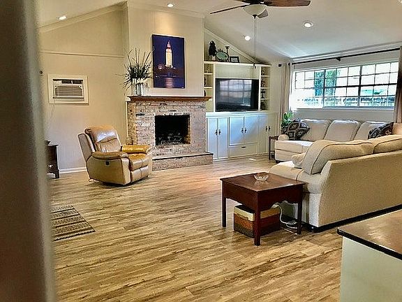 MOTIVATED SELLER. Spacious, beautifully updated. Ready to move in. NEW HVAC SYSTEM and HOT WATER HEATER just completed. ROOF NEW in 2019. Split floor plan. Large MB walk in closet. MB bath with walk in shower and water closet. Hall bath with Jaccuzi tub/shower combo and double sinks.Quartz countertops in both bathrooms. Utility room with 1/2 bath and large sink. Large den with fireplace, french doors, wet bar. Vinyl/laminate floors in family areas, carpet in bedrooms. Large patio off den. Lots of storage inside and out. DID NOT FLOOD. In FLOOD ZONE AE, Lenders require flood insurance. Must See. Call for appointment.