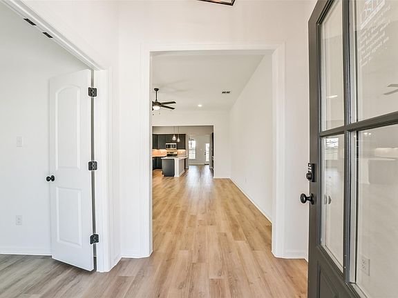 *MODEL home for sale!* Wonderful 1 story open floor plan with 3 bedrooms and 2 full bathrooms. Kitchen features quartz countertops, spacious with lots of cabinetry and island, custom back splash, pendent lighting in kitchen per plan. LED lighting throughout. Spacious primary bedroom with walk in closet & double sinks. Ceiling fans in living room and primary bedroom. Primary bedroom with double walk-in closets. Study at front of home after entering front door. 2 car garage with garage door opener. Vinyl plank flooring throughout. Fully sodded yard with sprinkler system and fenced backyard. High efficiency low E tilt-in window and HVAC. Energy efficient stainless steel appliances including electric range, dishwasher, and exterior vented micro hood. Matte black plumbing fixtures. Tankless gas water heater! Located in model park row on a cul de sac, located at front of community just down from the new stunning amenity center. Highlight that it’s a new and comes with full warranty.