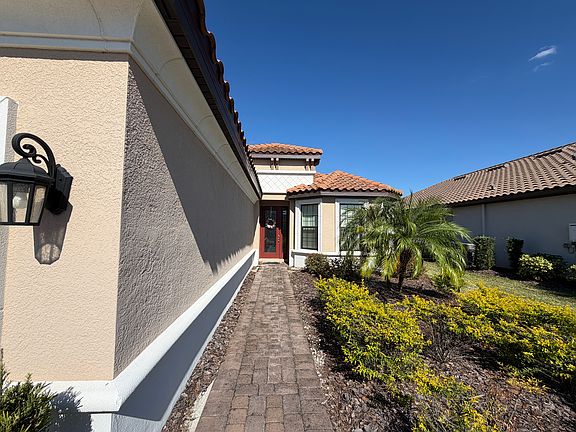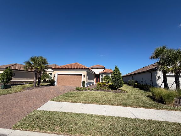 Welcome to this beautifully appointed turnkey furnished home for an annual rental! Offering 2 bedrooms plus a spacious Den with solid double pocket doors, 2.5 bathrooms, with each bedroom featuring its own ensuite bath and a 3 car tandem garage. Designed with elegance, comfort and style in mind, this home combines modern conveniences with resort-style living in one of the most desirable gated communities. Step inside to an inviting open great room floor plan filled with natural light. The large dining room with tray ceiling allows for fun entertaining with plenty of room. The spacious kitchen features a massive center island with bar seating, stainless steel appliances, pull-out drawers, a large walk-in pantry, and a cozy breakfast nook. Everything is ready for your use, from the cookware, to plates and utensils and everything in between. Enjoy breakfast in the cafe nook area or scoot in right at the island! Triple sliding glass doors lead out to the brick paver lanai that is covered and screened and pre-plumbed for gas, just hook up your gas grill! This home is overlooking a private preserve with a peekaboo view of the lake the perfect spot for morning coffee or evening relaxation. The primary suite is generously sized with a king bed, a luxurious bathroom featuring a huge walk-in shower, dual vanity, and an expansive walk-in closet. The secondary bedroom offers two twin beds and its own private ensuite bath with walk-in shower, while the den includes a full-size sleeper sofa. Additional highlights include: Large laundry room with washer, dryer, abundant cabinet storage, and a long counter for folding laundry and storage. Landscaping and pest control are included in the rent, as well as cable and internet via Spectrum. There is also a 3-car garage, currently the tandem 3rd spot is being used as a workshop and you get to enjoy the new storage chests! Sorry, no pets allowed. Located in the gated community of Esplanade at Artisan Lakes, residents enjoy access to a stunning clubhouse, fitness center, resort-style pool and spa, tennis and pickleball courts, and a full calendar of social activities, bocce ball, scenic walking trails, gathering firepit, and peaceful lake views. There's even a cafe! The community's central location offers easy access to shopping, dining, grocery stores, and I-75 for convenient commuting to Tampa, St. Petersburg, or Sarasota. This beautiful home is move-in ready and available for an annual lease immediately. Experience maintenance-free, resort-style living at its finest start enjoying the Esplanade lifestyle! Virtual video walk through available.