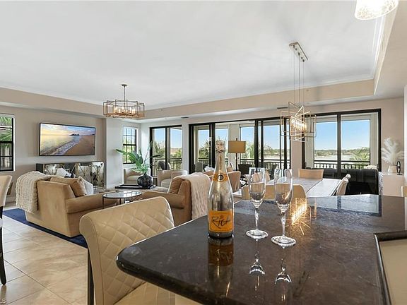 Indulge in the epitome of luxury living with this exceptional 3-bedroom + den turnkey condo, boasting the largest floorplan available in Mirasol at Miromar Lakes. Just bring your boat and step into a world of unparalleled elegance, sunsets and convenience. Designed with an open floorplan concept, this residence exudes a sense of spaciousness and sophistication, offering the perfect canvas for both relaxation and entertaining. Step outside onto one of the two expansive lanais and soak in the mesmerizing southern-facing lake views that stretch as far as the eye can see. With a private deeded boat dock included, you'll have the opportunity to explore the serene waters of Miromar Lakes at your leisure, creating unforgettable memories with family and friends. For added peace of mind, this condo is equipped with hurricane shutters, ensuring your safety and security during inclement weather. Inside, a convenient wet bar awaits, providing the perfect setting for hosting guests and indulging in cocktails against the backdrop of the sunset. Sold turnkey, this residence is ready for immediate enjoyment, allowing you to effortlessly transition into your new waterfront oasis. Whether you're seeking relaxation or adventure, the abundance of amenities at Miromar Lakes, including pickleball and tennis courts, exquisite dining options, a marina, fitness center, and more, ensures there's something for everyone to enjoy. Conveniently located near the Southwest International Airport, bustling shopping centers, and the renowned JetBlue Stadium, this property offers both luxury and convenience at your fingertips. Embrace resort-style living at its finest in this stunning Mirasol condo at Miromar Lakes – schedule your private showing today and elevate your lifestyle to new heights!