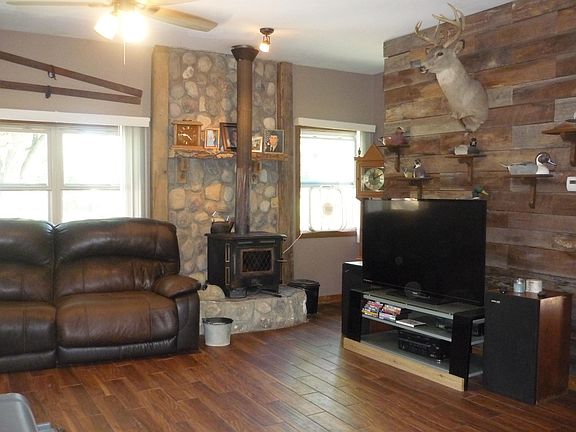 Bring the Boat! Cute cottage style home with 50' river frontage includes boat landing and sand area. Open living room/kitchen layout with 9' ceilings and wood burning stove. Large bedrooms and updated bath. Dual purpose garage/basement. Oversized deck with awesome views! Located across from park.