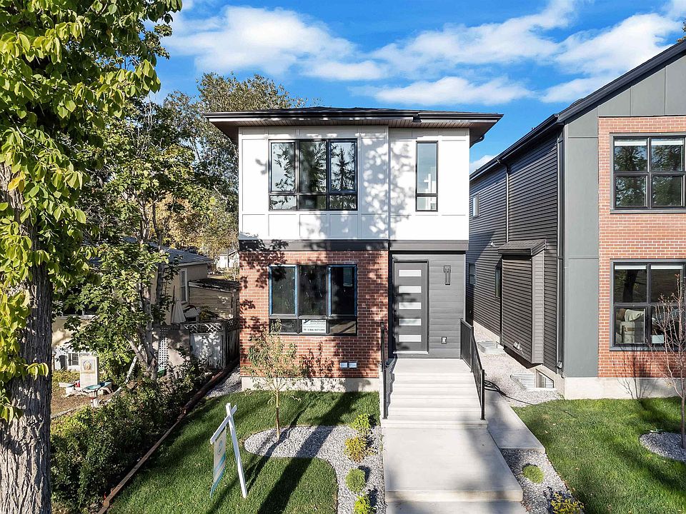Stunning new Westmount infill with a legal 2-bedroom basement suite! This modern 2-storey offers nearly 2,000 sq ft above grade with a bright open layout and premium finishes throughout. The main floor features a spacious living area, designer kitchen with two-tone cabinetry, quartz counters, stylish backsplash, full bathroom, and a flex room ideal for an office or guest space. Upstairs you'll find 3 bedrooms including a primary suite with walk-in closet and dual vanity ensuite, plus laundry and another full bath. The fully finished basement includes a legal 2-bedroom suite with separate entrance—perfect for rental income or extended family. Complete with a double detached garage. Located steps from Westmount Off-Leash Park, minutes to downtown, 124 Street shops, and top-rated schools. A perfect blend of modern luxury and smart investment!
