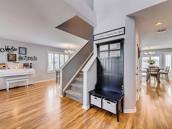 Stunning 4 bedroom, 4 bath, pride of ownership, meticulously maintained home at the end of the cul-de-sac*Charming covered front porch*Beautiful laminated wood floors throughout main level*Gorgeous kitchen w/SS appliances, white cabinetry, upgraded new quartz countertop, new backsplash, kitchen island, pantry & lg eat-in area which opens to a light, bright & airy great room w/built-in's*Spacious dining area & living rm for entertaining or spending time w/the family*Upstairs you will find the master suite w/vaulted ceiling, 3 bedrooms which will utilize a full bath w/upgraded wall tile & plenty of shelving*Nice size loft area & laundry area*Fully finished basement has lg recreation/media/great room & 3/4 bath*(pool and foosball table stays*Beautiful backyard opens to greenbelt, deck w/natural gas convenient for your BBQ's, fire pit area, (trampoline & basketball hoop stays) & built-in shed * New water heater*Shutters*Storm front door *Minutes to downtown Parker, schools, parks & trails!