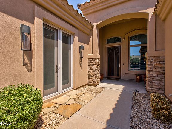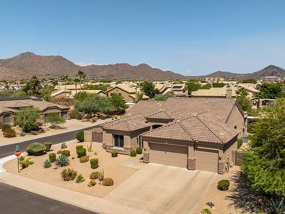 This gorgeous Scottsdale home is fully remodeled, features all the upgrades and is immaculate. It's the kind of home where you walk through and say WOW. From the flooring to the roof and everything in between, this property is impeccably maintained and shows like a dream. Situated on a corner lot in a tranquil cul-de-sac with beautiful views of the McDowell Mountains, this home is conveniently located within walking distance of the esteemed Basis school. It has tall ceilings throughout, a spacious and open floor plan, and ample natural lighting. The great room, with stacked stone fireplace and overlooking the beautiful backyard, seamlessly connects to the gourmet kitchen. The kitchen is equipped with a gas cooktop, stainless steel appliances, a substantial island, beautiful custom cabinetry and granite countertops.