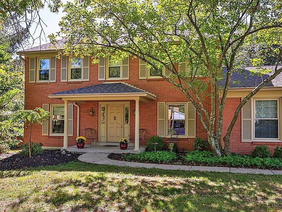 *Open House: 10/28/23 from 1-3pm* Well maintained & updated four bedroom traditional brick home situated on a level, fenced, cul-de-sac lot in popular Tanager Woods! The Gourmet Kitchen enjoys solid surface counters, stainless steel appliances, a large eat-in area and is open to the Family Room which is accented by a fireplace, built-ins and walks out to the tiered deck & rear yard! Both upstairs bathrooms have been remodeled. The lower level is also finished for more family fun! New carpet upstairs '23*New driveway '21*New roof '20*New HVAC '18 & more! Within minutes to Harper's Point & walking distance to Weller Park!!