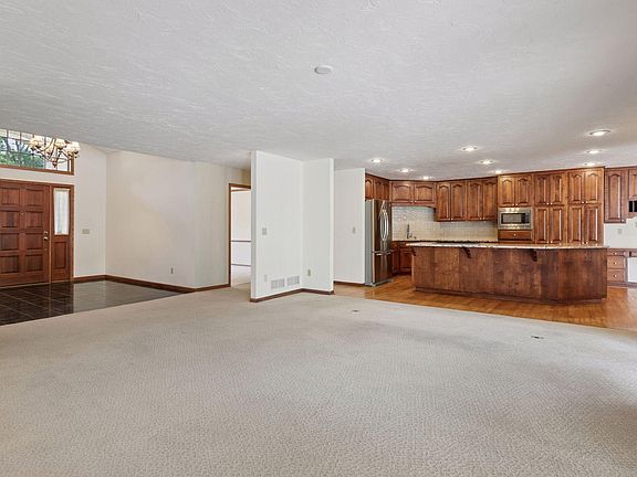 Bell Oaks U-shaped rambler with over 4,000 sq ft and a pool! 4 bedroom / 4 bathrooms, 3 car garage and nearly a half acre lot. Opportunity! Home needs a good amount of updates and some fairly big repairs – priced well below market to accommodate work needed. Grand foyer leads to a carpeted family room with built-in entertainment cabinets and fireplace. This entertaining space is open to the large, updated kitchen with massive island, granite counters and stainless steel appliances. Casual dining room and sun room are adjacent to the kitchen. Formal dining and living rooms flank the foyer. 3 bedrooms (all with bathrooms attached) are on one side of the home, private primary suite is on the opposite side of the home. Primary suite features a full bath with separate tub / shower, walk-in closet and direct access to the patio and pool. Don’t forget the large den (with wood burning fireplace) main floor laundry / mudroom and powder room. The lower level provides ample storage and workshop potential. Fully fenced yard in back, extensive landscaping and a large patio around the pool. 2 furnaces, 2 AC and 2 water heaters for efficient zone response. Radon mitigation system. 3 car garage – including an RV port. Home has been pre-inspected.