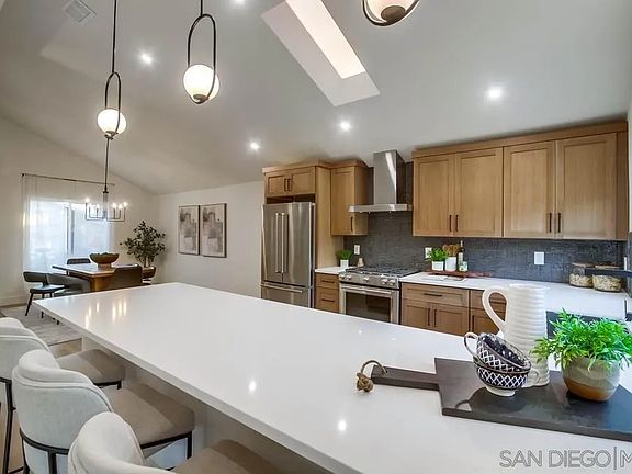 In the heart of Scripps Ranch, this beautifully remodeled home with an inviting pool combines elegance with an exceptional layout for a true indoor-outdoor lifestyle. Step inside to soaring vaulted ceilings, abundant natural light, and designer finishes throughout an open-concept floor plan that exudes sophistication and comfort. The gourmet kitchen showcases custom cabinetry, sleek countertops, and a retractable bifold window that opens to the sparkling pool and inviting backyard—perfect for entertaining or simply unwinding at home. The low-maintenance yard is thoughtfully landscaped to create a private, serene retreat ideal for dining, lounging, or gatherings under the San Diego sun. A main-floor bedroom offers flexibility for guests or a home office, while upstairs you’ll find three additional bedrooms, including a spacious primary suite with dual vanities and generous closet space. Energy efficiency shines with paid solar panels and a Tesla battery backup system, providing both sustainability and peace of mind. Set on a private corner lot in one of San Diego’s most coveted communities, this residence offers exceptional privacy while being just minutes from top-rated schools, scenic hiking trails, parks, shopping, and dining. Experience the best of Scripps Ranch living—modern luxury, eco-friendly features, and resort-style outdoor spaces—all in one extraordinary property.