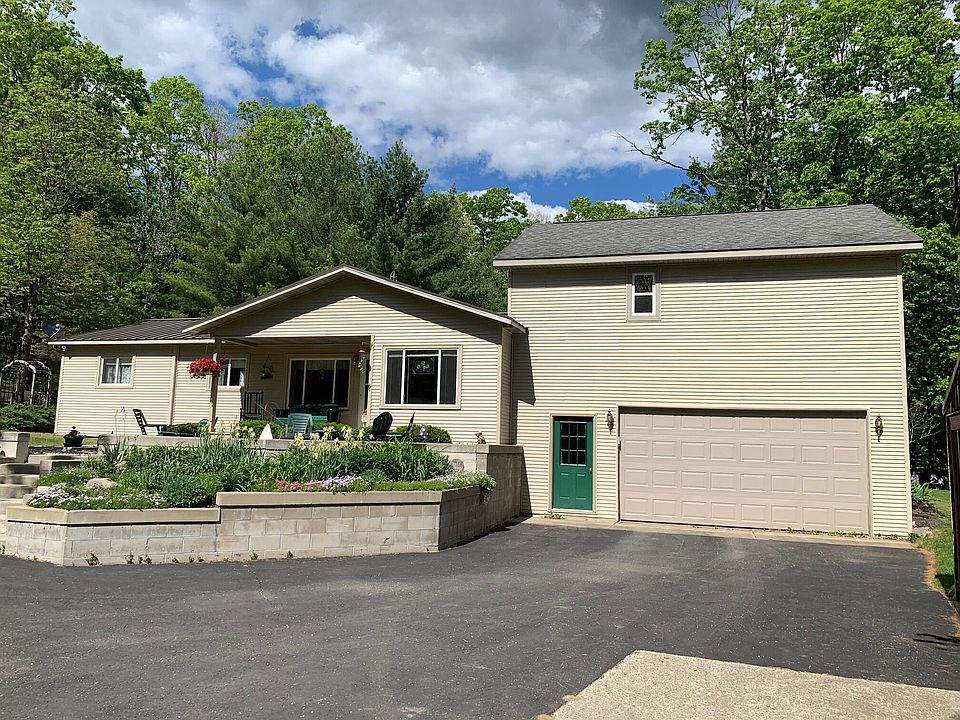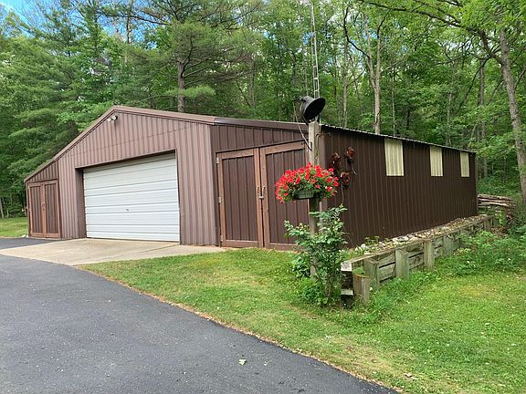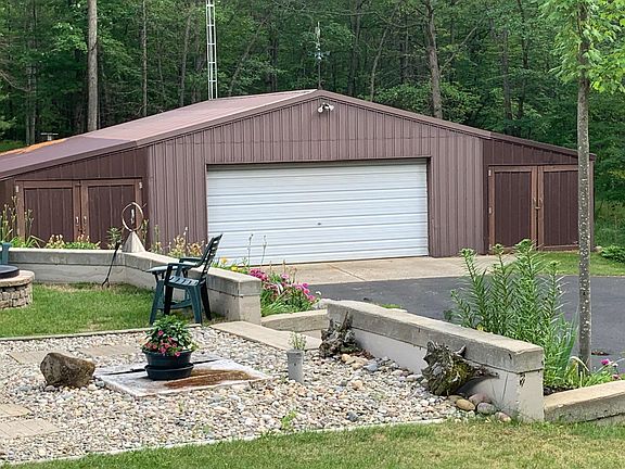 Privacy, seclusion and wildlife galore!! 40 acres adjacent Federal Forest Land. Home offers large country style dining room with gas log fireplace, spacious living room, ceramic kitchen, den, office, master ensuite with walk in shower, jetted garden tub and large walk-in closet. Two additional bedrooms. Radiant heat in family room, master suite level, and garage. Attached heated garage and pole barn with wood heat both with openers. Many extras including multi level deck, hot tub, Generac generator, outdoor wood boiler. Trails in the 40 acres lead to 2 small furnished cabins and a tree house. Oil & mineral rights included with one working well. Even a 4 wheel drive pickup truck with blade. Heat backup with indoor boiler and electric units. Many extras and complete privacy.