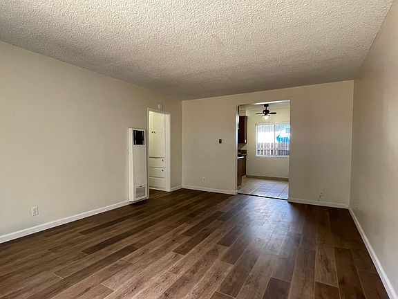Small 8 Unit Apartment Complex. Walking distance to Movie Theater, Downey Street Promenade, Portos, and the Downey Gateway eatery. This unit features; New laminate flooring throughout the apartment, nicely refinished kitchen cabinets with granite top. New fresh paint. The master bedroom with it's own private master bathroom. Both bathrooms have been fully remoled. 1 Car detached garage with plenty of off street parking. Ready today for move in. MONTH TO MONTH RENTAL AGREEMENT. Owner pays for water & trash. Tenant pays for Gas & Electric utilities.