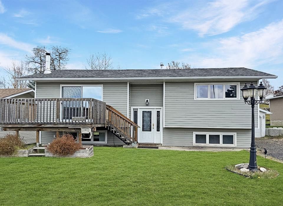 Welcome to 10729 104 Avenue in beautiful Grande Cache. This bright and spacious four bedroom bi-level stands out with incredible curb appeal, stunning mountain views, and a long list of thoughtful upgrades. The main floor features a sun-filled living room with walkout to the front patio—perfect for enjoying your morning coffee with a view. The kitchen is warm and inviting, complete with stainless steel appliances, oak cabinets, ceramic tile flooring, and access to a sunny back deck overlooking a generous backyard, ideal for family gatherings or quiet evenings outdoors. Fresh laminate flooring flows through the living room, entrance, and hallway, giving the space a clean, modern feel. Upstairs offers two comfortable bedrooms and a bright four-piece bathroom, while the lower level provides two more bedrooms, a three-piece bathroom, laundry, and a cozy family room with a wood stove—a perfect spot to relax on chilly mountain nights. Recent updates include a new roof (2023), foam board insulation with vinyl siding for improved efficiency, front and back decks, and a large storage shed with loft. The 18x22 garage adds convenience and extra storage. Located close to schools and surrounded by natural beauty, this move-in-ready home has everything you need to settle in and start making memories. This is one you won’t want to miss.