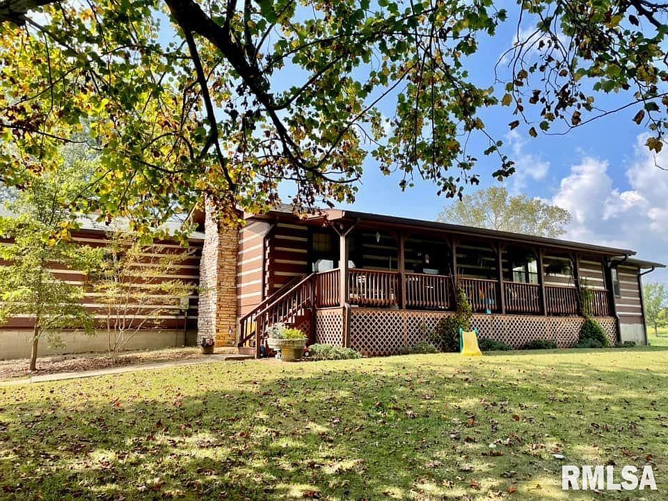 Country Log Home located close to town, schools and I-24 on 2 acres at the end of a private drive off Country Club Rd in Massac County. 6"x10" tongue and groove log home with 3-4 bedrooms, 3 baths, full basement with walk-out. Vaulted ceiling, stone gas log fireplace in living room and hardwood floors. 25' covered front porch w/ porch swing. Fenced backyard. Attached 2 car garage. Storage shed. The basement can be used as a family room and additional bedroom. Laundry, full bath and workshop in the basement. 40-50' deep private well. New light fixtures inside & out and remodeled baths are a few recent updates. Roof and HVAC approx 11-12 yrs old. Seller will consider a $1,000 concessions toward Buyer Closing Costs!