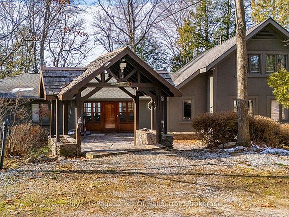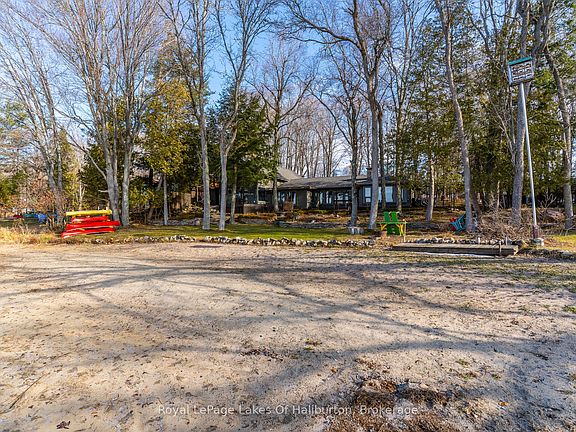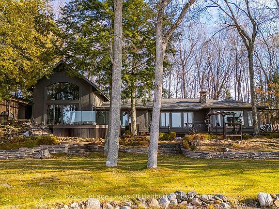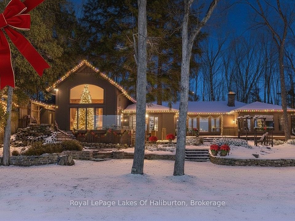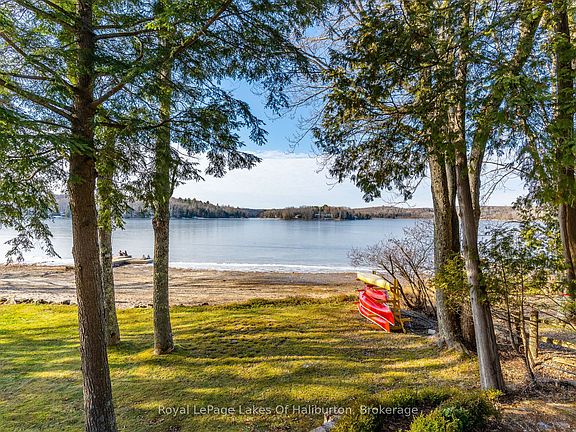 The Ultimate Lakefront Lifestyle in the Haliburton Highlands - Experience year-round luxury in this elegant 4-bedroom, 4-bathroom executive lake house, perfectly situated in the Haliburton Highlands. This home is located on a rare, level lot with sandy lake frontage on the scenic Kashagawigamog five-lake chain, which allows you to boat directly into Haliburton and other various points of interest. Enjoy sought-after western exposure for spectacular, all-season sunsets. The home is an unbeatable blend of modern executive living and timeless charm, upon entry through a custom antique wood door, you're greeted by a breathtaking wall of windows that frame the unobstructed waterfront view. The open-concept living space features a cozy stone wood-burning fireplace, sitting area and breakfast nook with walkout to lakeside decking. The gourmet kitchen is a chef's dream, featuring $100K in high-end Thermador stainless steel appliances, including a wine fridge, an oversized sit-up center island, and dual deep sinks the open concept dining room has a cathedral ceiling and a walkout to the glass-paneled lakeside deck. The luxurious main-floor master bedroom is a private haven, offering a walkout to a lakeside deck, a massive walk-in closet, and a stunning 5-piece ensuite with a soaker tub, & glass shower with seat. A second main-floor bedroom with a 3-piece ensuite providing convenience, while two spacious upper-level bedrooms and 5 piece bathroom ensure comfort for family and guests. The flexibility to purchase the adjacent separately deeded waterfront vacant ($449,900) lot to build a completely separate dwelling would make for an ideal family compound . Seize the opportunity to own this extraordinary property, offering luxury, charm, privacy, and nature's beauty in a prime Highlands location all with having the unique advantage of being within walking distance to town, the hospital, medical center, and all local amenities.