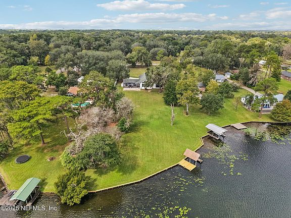 Updated Waterfront Property - 3,181 sq ft home on 1.45 acres on the widest part of Lake Asbury with stunning views! Inside, the home features a fully remodeled kitchen and butler's pantry with quartz countertops, double wall oven, new backsplash, and updated fixtures. The bathrooms have been renovated with new vanities, tile, glass showers, and updated faucets. Wood flooring in the master and additional bedroom, fresh lighting throughout, and custom touches like a glass-inset front door and updated ceilings add warmth and character. A spacious laundry/utility room offers built-in storage and convenience. Major system updates include a newer AC, water heater, electric panel, and a partial roof replacement. Step outside to enjoy a newly widened driveway, fresh exterior paint, a fenced yard, and sprinkler system. The large, screened patios open to waterfront views, complete with a replaced dock and bulkhead top, perfect for fishing, relaxing, or enjoying the Florida sunsets.
