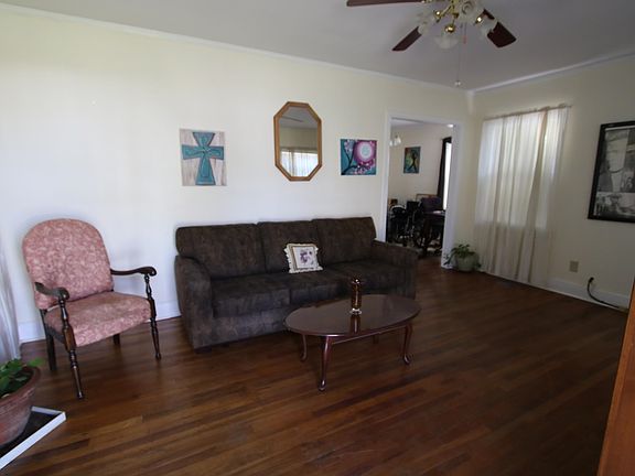 This cute 2 br, 1 bath home is looking for its new owner. Perfect for first time buyer, someone looking to downsize or investor. Deep fenced in back yard with storage building. Handicap access if needed to front door. The stove, refrigerator and microwave stay. Original hardwood flooring in the living room, dining room, and one bedroom. Being sold "as is".