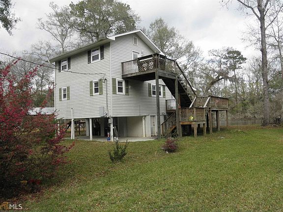 Wonderful get away on the Ogeechee River or Year Around Retreat! Nicely Renovated Home on 2 lots on the river. Home Features Living Room/ Dining Combo. Ceramic and Carpet Flooring. Family room with Fireplace is Open to Dining room. Open Floor Plan. Master on Main Floor and 1 Bedroom Upstairs. Wrap around Porch outside. Great extras include Floating Dock and Regular Dock. Excellent condition with New Renovations. Home could easily be permanent home or weekend getaway. Very well maintained. Large space under home for storage and includes outside kitchen and 1 bath. Perfect living at its best! $200 Assoc. Fee includes Water.