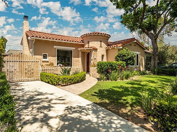 Classic 1920's California Spanish style 3 bedroom, 2.5 bathroom, 1,803 sqft. single family home on beautiful tree-lined Stearns Drive in historic Carthay Circle. A charming entryway, indicative of the era, leads into the large, bright living room with high ceilings, original hardwood floors, a wood-burning fireplace and flows into the formal dining room and adjacent, tastefully remodeled kitchen featuring custom cabinets, high-end appliances, new tile floors and sunny breakfast nook. This private, well maintained home has tremendous potential to live and work in one of LA's best neighborhoods. Three spacious bedrooms, with era appropriate walk-in closets, the main bathroom represents the period with deco style tile, recently refinished hardwood floors throughout, natural wood moldings and doors with period hardware, laundry room, lovely, front and private back yards and the detached 2-car garage features a separate bonus room, office or studio with 1/2 bath. On the market for the first time in 34 years! Don't miss out!